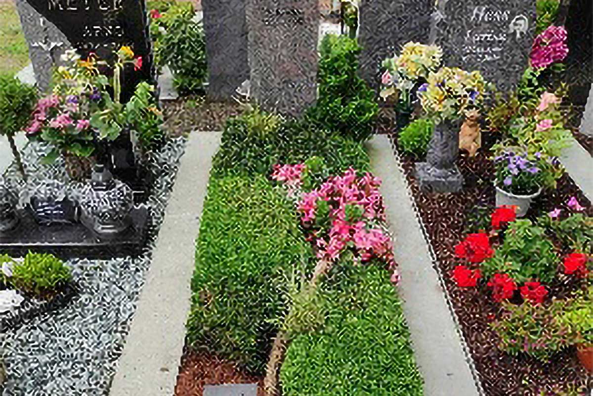 Nach dem Aufstellen des Grabsteins folgt die Erstbepflanzung, also die Grabgestaltung, die für viele Jahre Bestand hat. Hier haben wir viele Möglichkeiten! Es umfasst den Einsatz von Symbolpflanzen, Bodendeckern sowie die Blumenbeete zu Frühling, Sommer und Herbst.